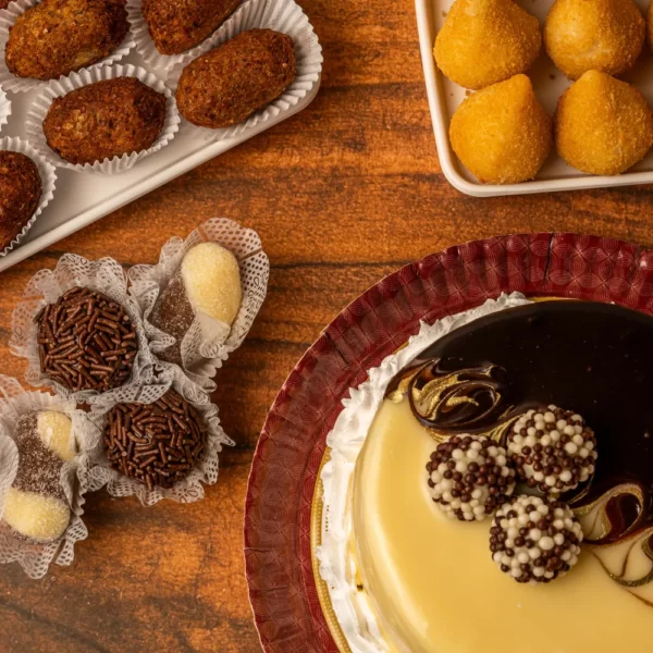 Escolha 3 sabores: Brigadeiro ou Dois Amores ou Beijinho ou Cajuzinho ou Olho de Sogra.