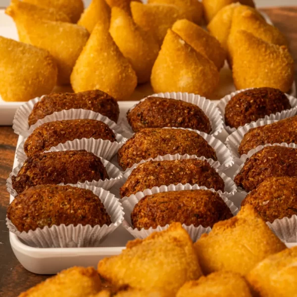 Escolha 3 sabores: Coxinha de frango ou Risoles de Carne ou Bolinha de Queijo ou Kibe ou Pastelzinho de Carne ou Queijo.